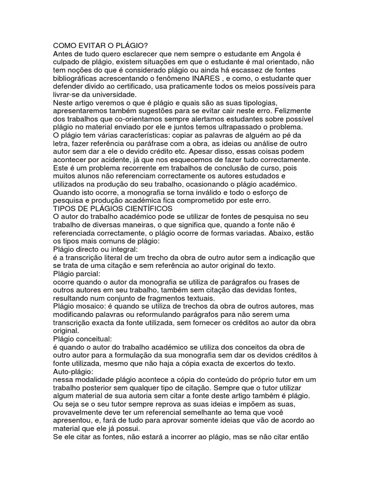 referenciada correctamente, o plágio ocorre de formas variadas. Abaixo, estão