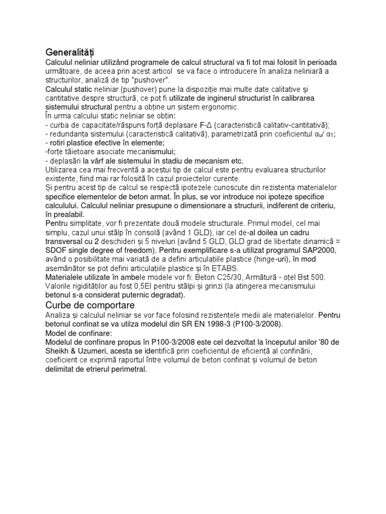 calculului. Calculul neliniar presupune o dimensionare a structurii, indiferent de criteriu,