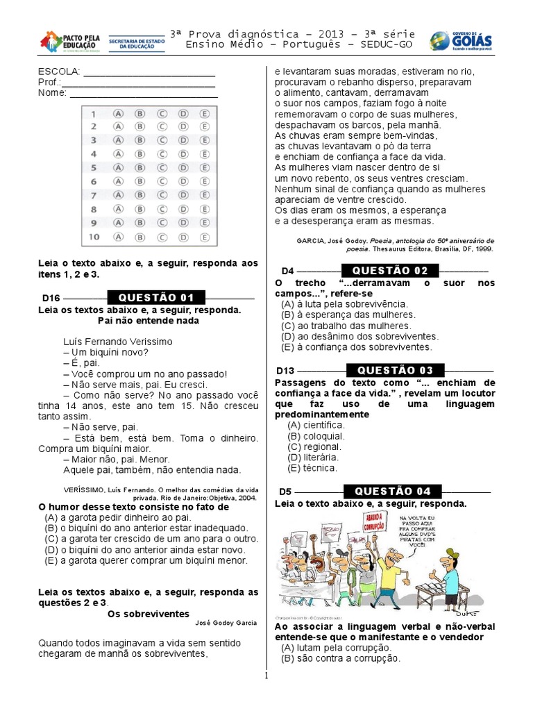 3ª Prova diagnóstica – 2013 – 3ª série