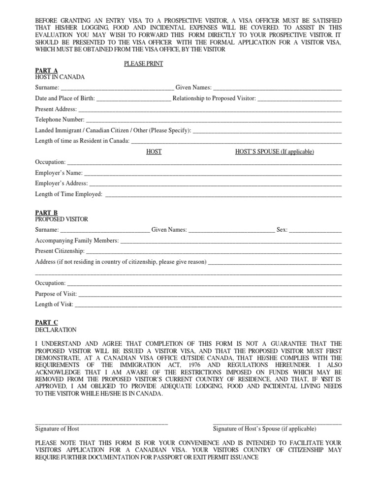 Date and Place of Birth: ________________________ Relationship to Proposed Visitor: ___________________________