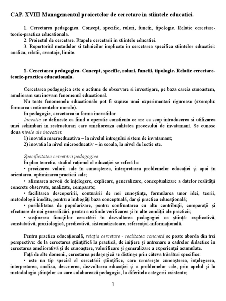 CAP. XVIII Managementul proiectelor de cercetare in stiintele educatiei.