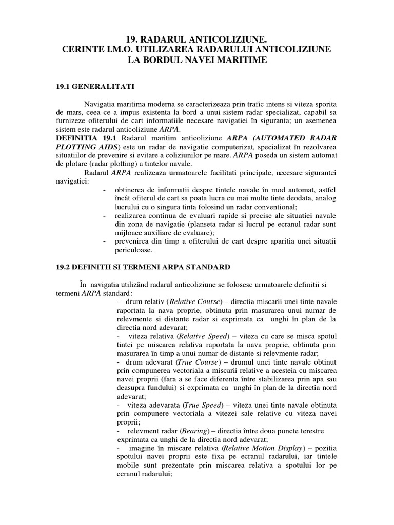 DEFINITIA 19.1 Radarul maritim anticoliziune ARPA (AUTOMATED RADAR