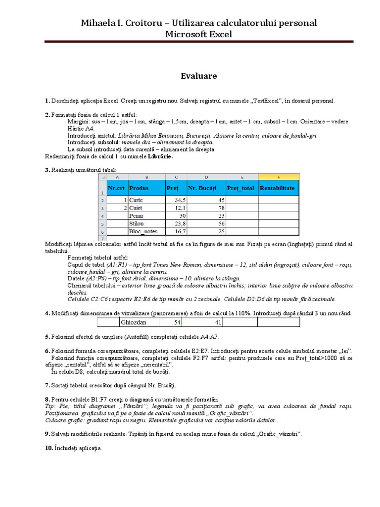 2. Formataţi foaia de calcul 1 astfel: