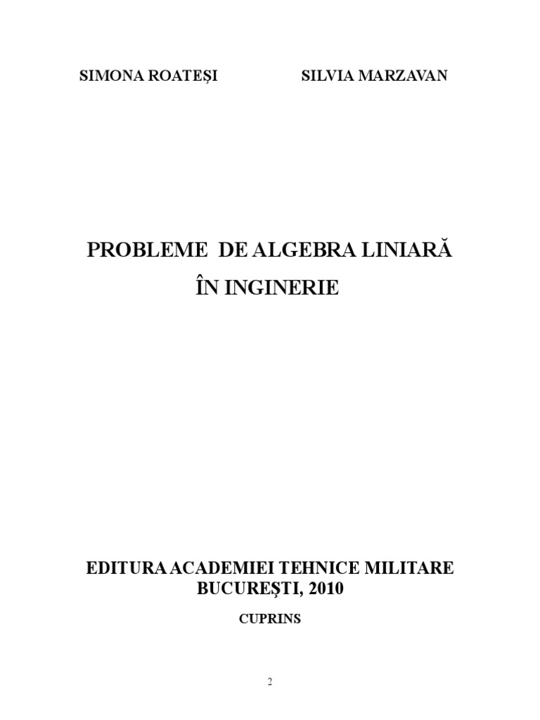 Materialul este structurat în opt capitole, şi anume: 1. Calcul vectorial, 2. Spaţii