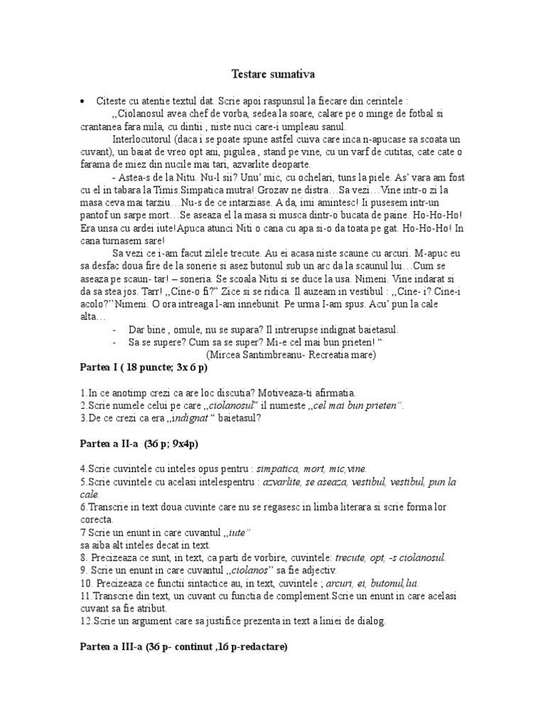 Citeste cu atentie textul dat. Scrie apoi raspunsul la fiecare din cerintele :