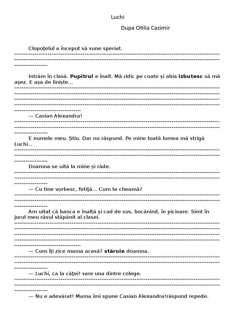 Luchi nu mai este nicăieri. În locul ei e o școlăriţă cuminte.