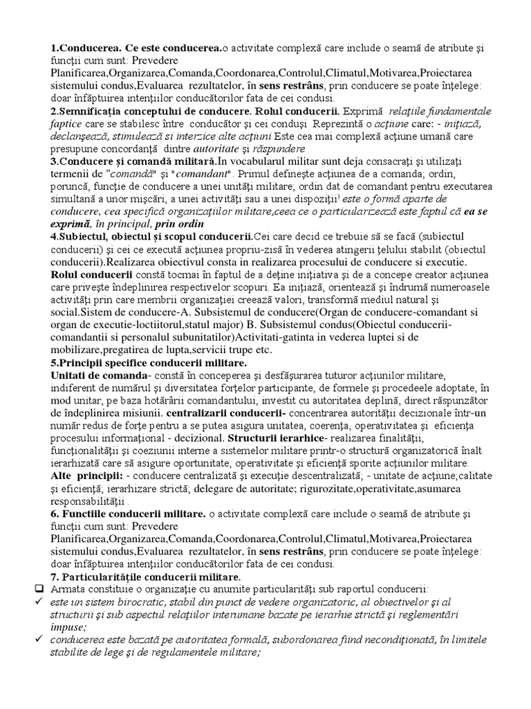 [Link] specifice conducerii militare.