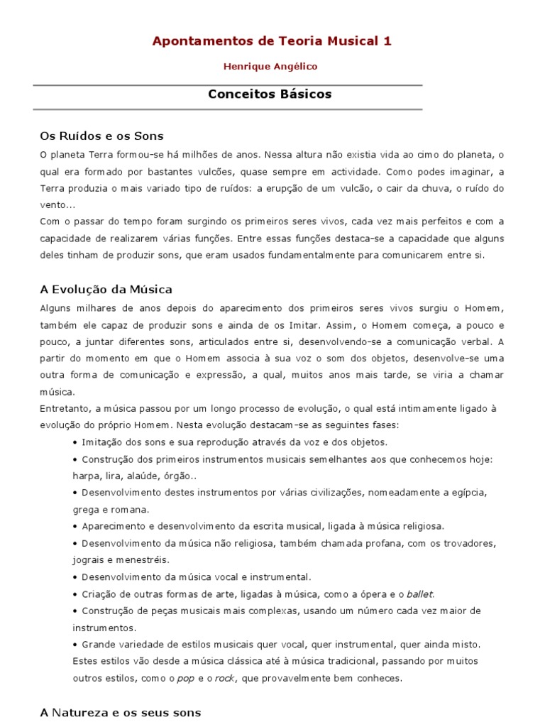 Entretanto, a música passou por um longo processo de evolução, o qual está intimamente ligado à