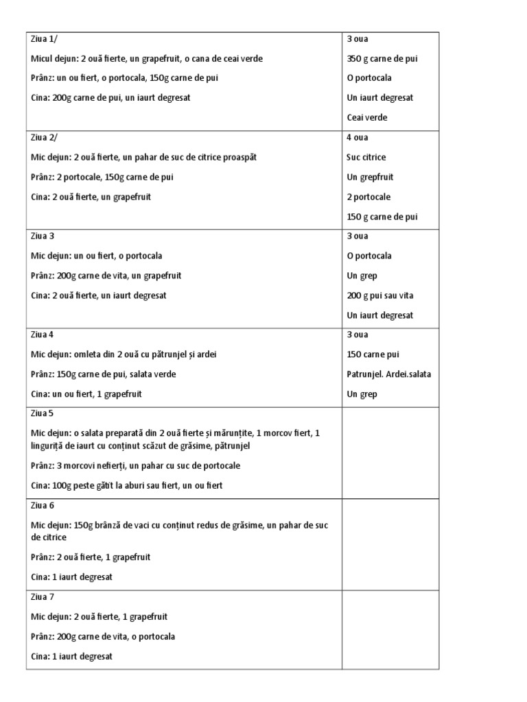 Prânz: 200g carne de vita, un grapefruit Un grep
