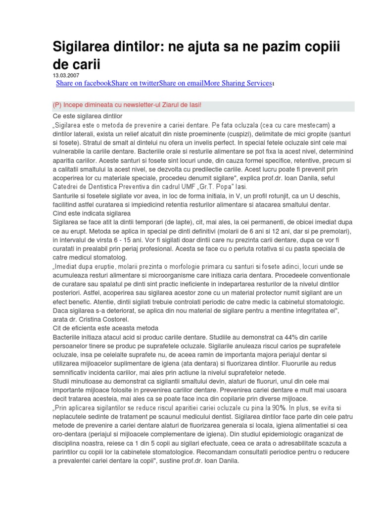 a prevalentei cariei dentare la copii", sustine [Link]. Ioan Danila.