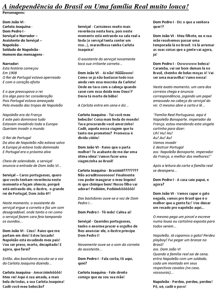 Napoleão - Óia, se faz de doido o Dom Pedro I - Pô papai... Num quero criado maluvido, e tu, sua rainha