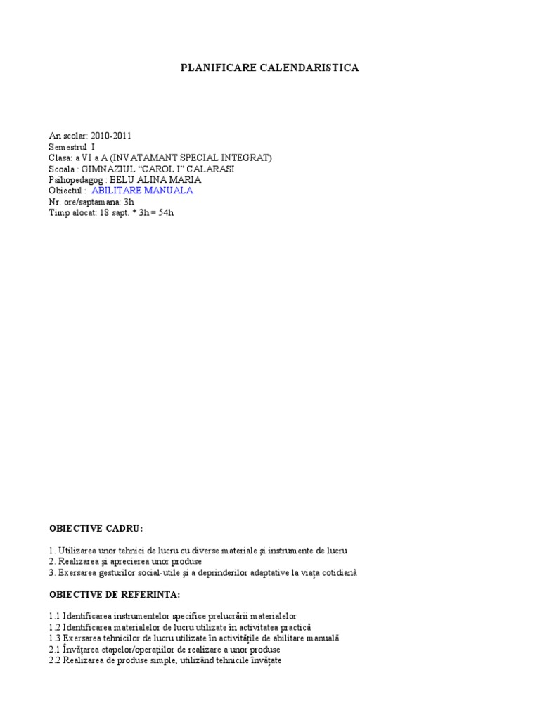 Obiectul : ABILITARE MANUALA