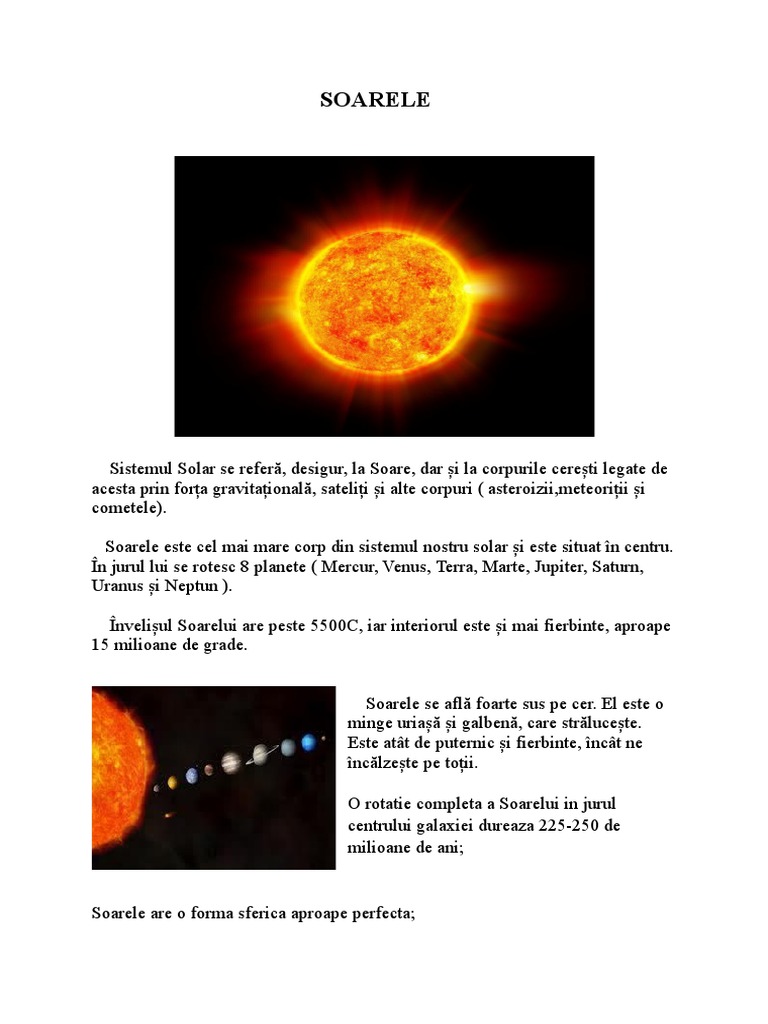 Soarele este cel mai mare corp din sistemul nostru solar și este situat în centru.