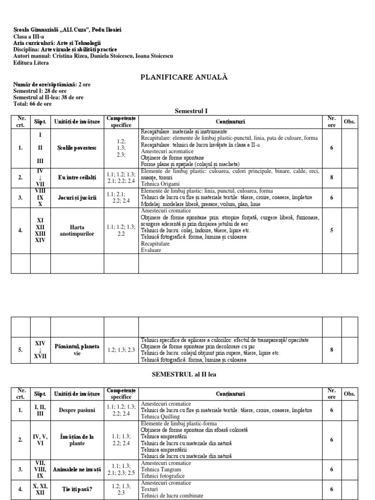 PROIECTAREA UNITĂŢILOR DE ÎNVĂŢARE - SEMESTRUL al II-lea