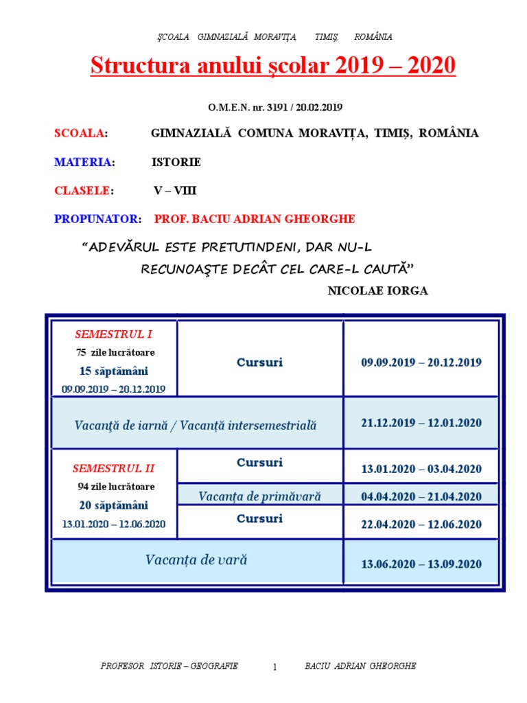 ŞCOALA GIMNAZIALĂ MORAVIŢA, TIMIŞ, ROMÂNIA