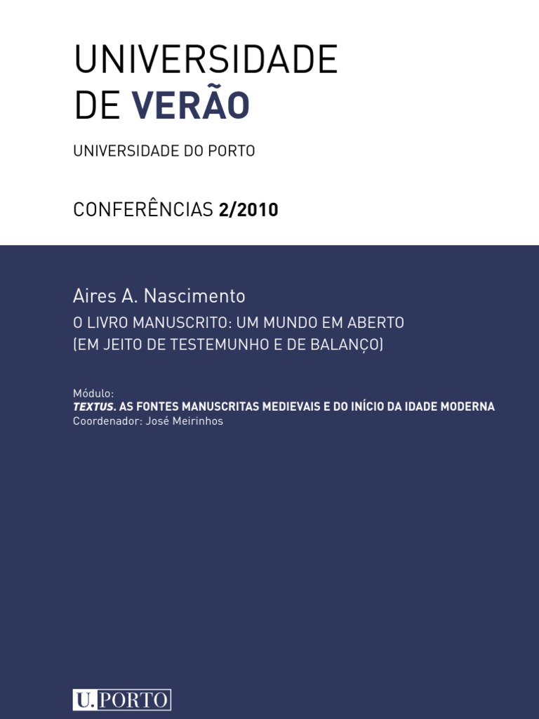 título O livro manuscrito: um mundo em aberto (em jeito de testemunho e de balanço) Autor Aires A. Nascimento Colecção Conferências da U.Verão: Módulo de textus. As fontes manuscritas medievais e do início da idade moderna N.º 2, Coordenação de José Meirinhos