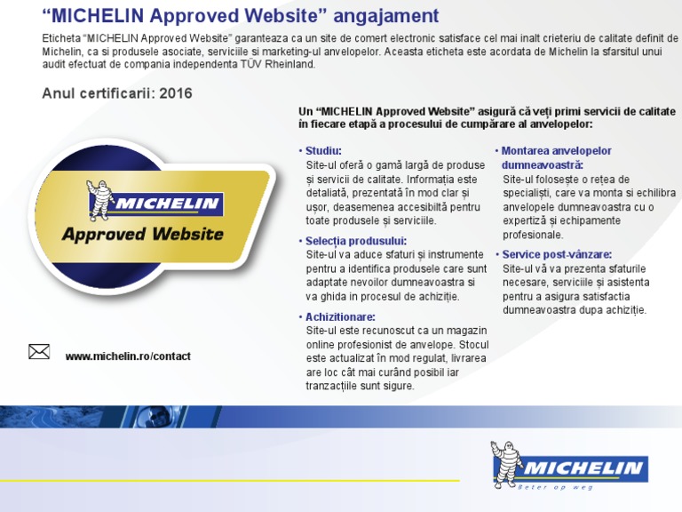 Un “MICHELIN Approved Website” asigură că veți primi servicii de calitate