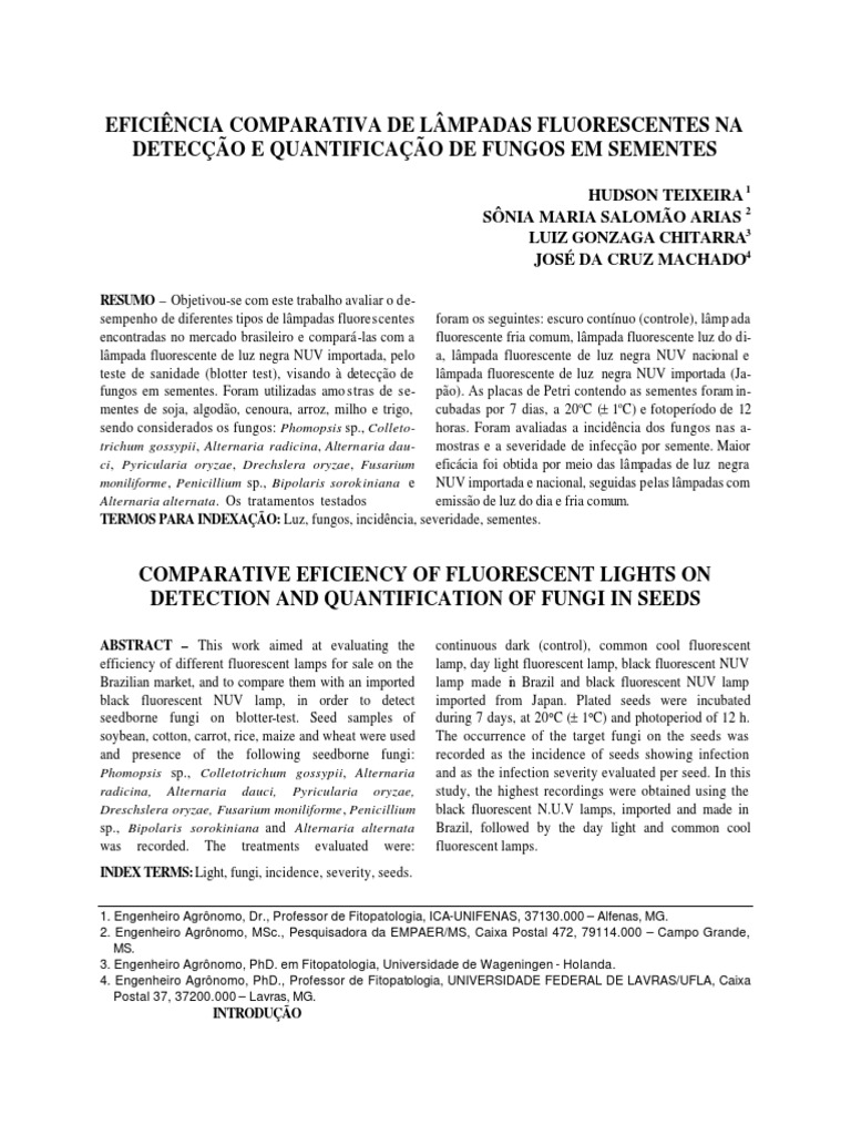 sanidade de sementes é a luz. A qualidade e intensidade utilização e dos efeitos da irradiação luminosa, fornecida