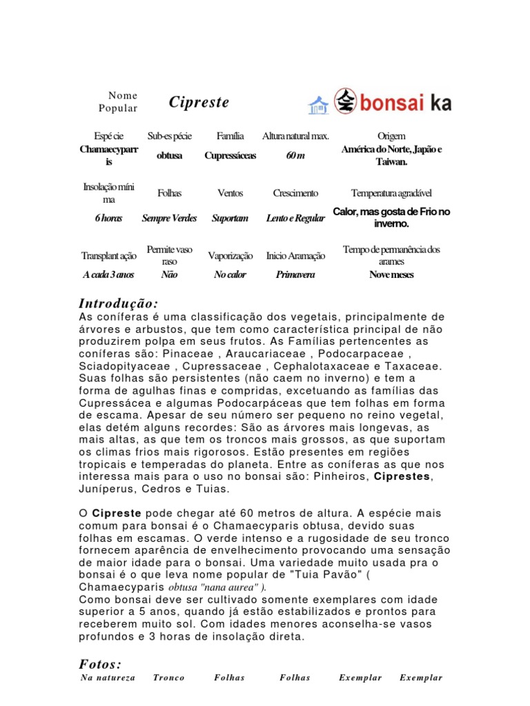 interessa mais para o uso no bonsai são: Pinheiros, Ciprestes,