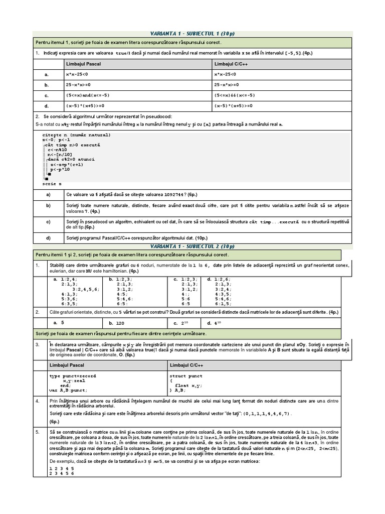 VARIANTA 1 - SUBIECTUL 2 (30p)