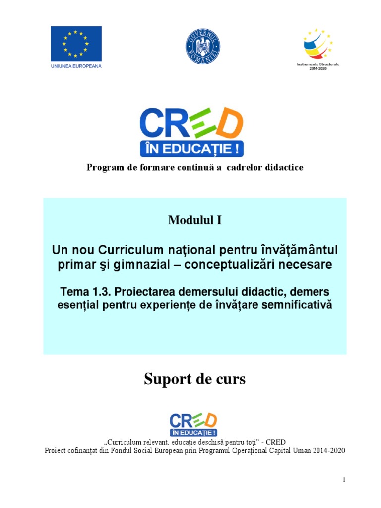 MODULUL I - Un nou Curriculum național pentru învățământul