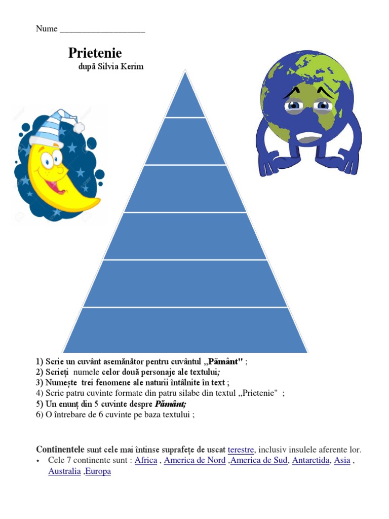 4) Scrie patru cuvinte formate din patru silabe din textul ,,Prietenie" ;