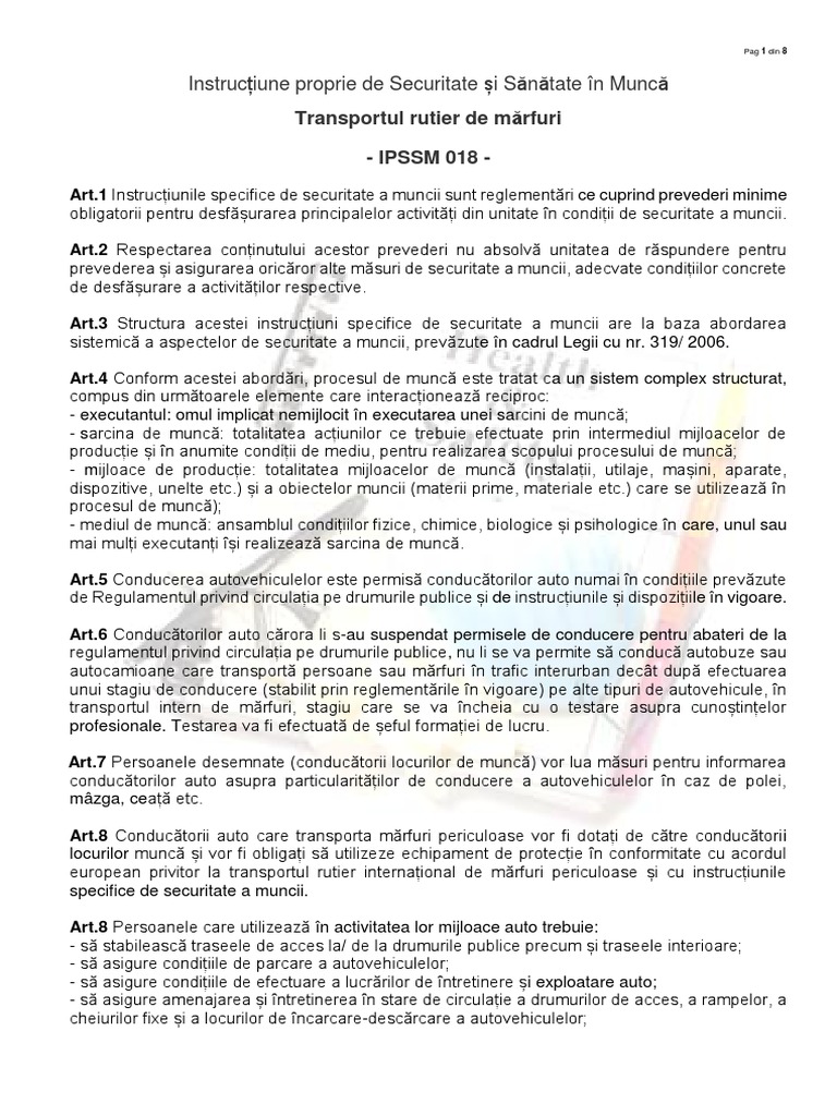 Art.1 Instrucțiunile specifice de securitate a muncii sunt reglementări ce cuprind prevederi minime