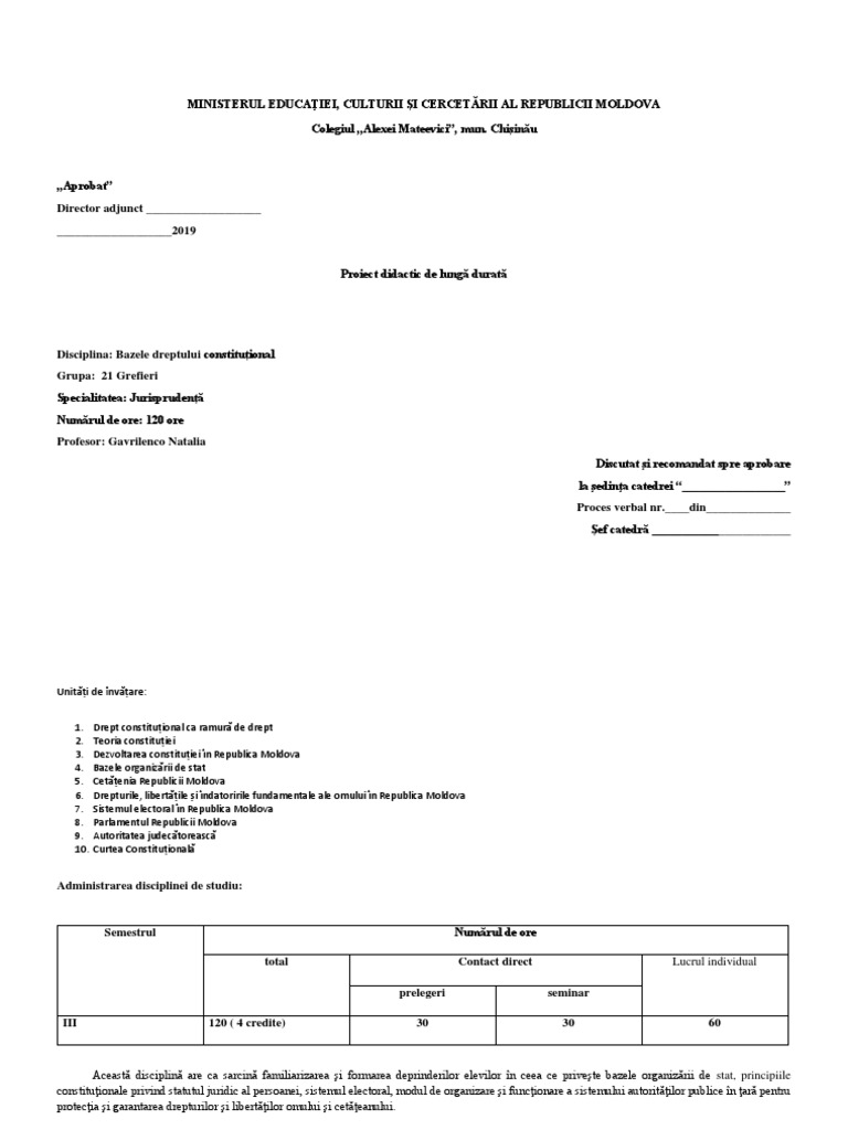 - Să cunoască obiectul și - Identificarea obiectului şi deprinde Moldova întrebări şi Constituțional și instituții