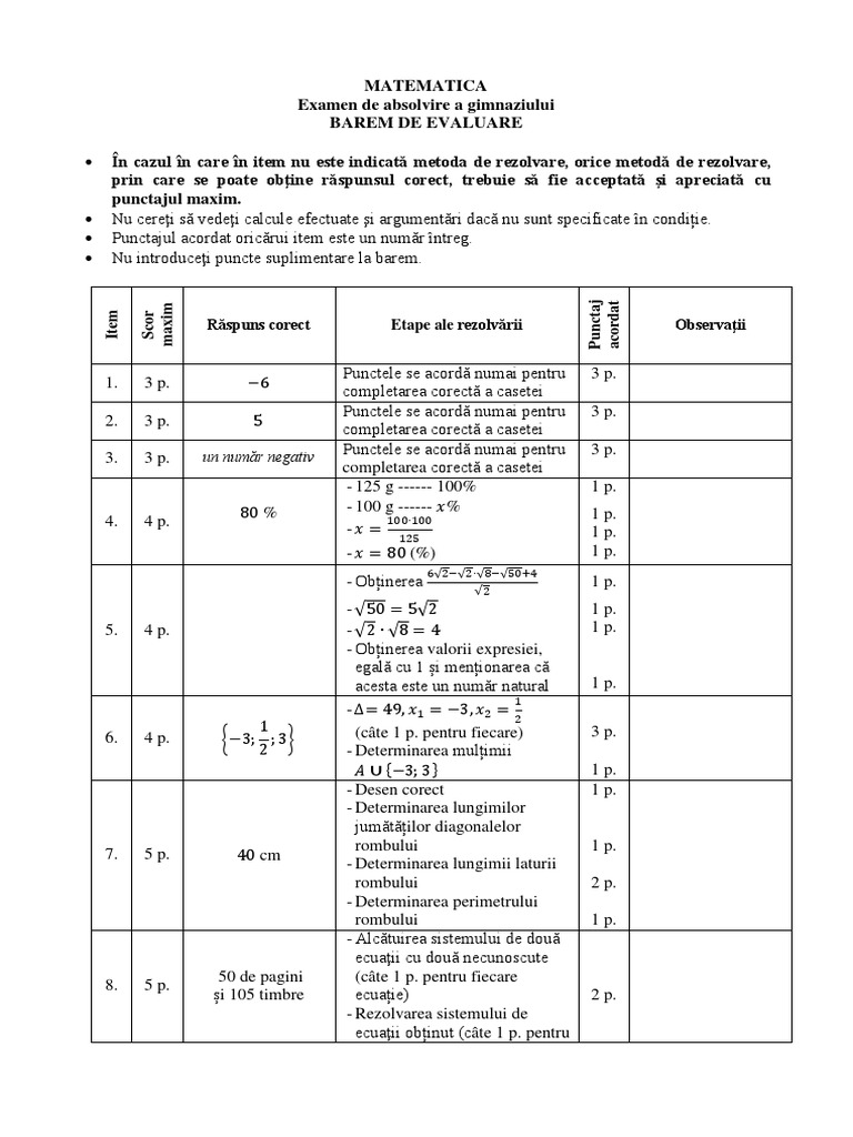 • În cazul în care în item nu este indicată metoda de rezolvare, orice metodă de rezolvare,