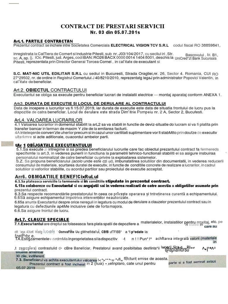 Prezentul contract se inchele intre Societatea Comerciala ELECTRICAL VIGION TCV S.R.L codul fiscal RO 38859841,