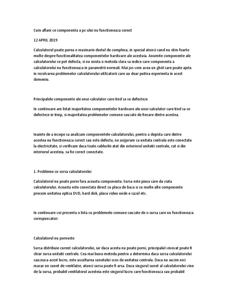 calculatorului se pot defecta, si nu exista o metoda clara sa indice care componenta a