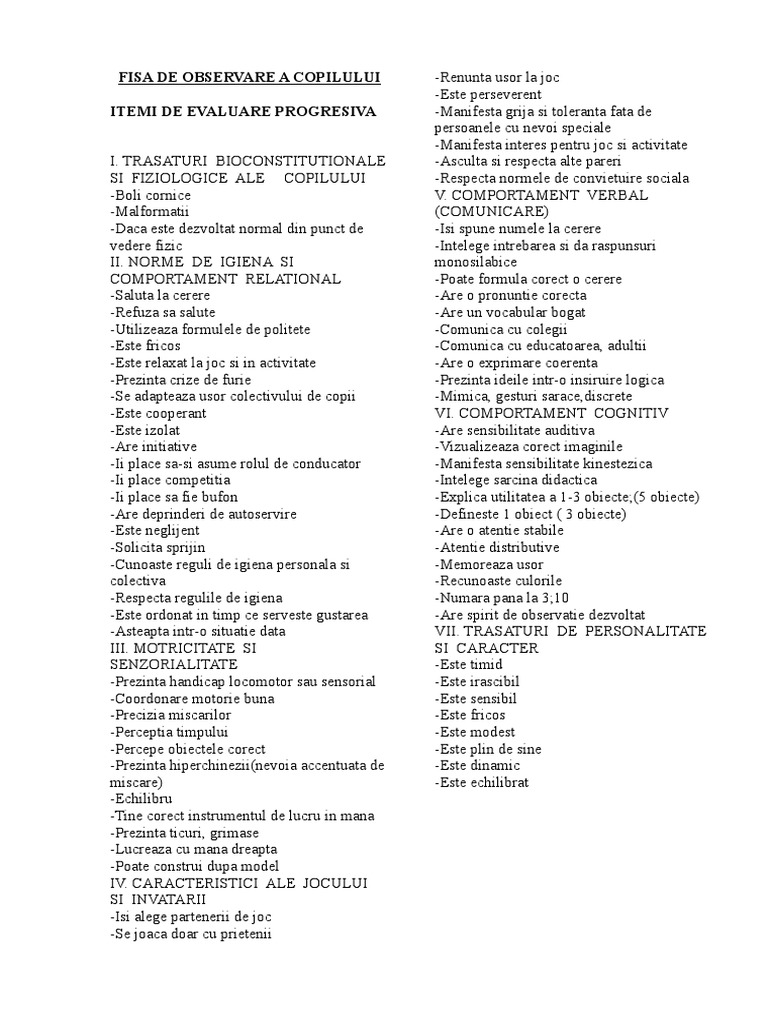 FISA DE OBSERVARE A COPILULUI -Renunta usor la joc