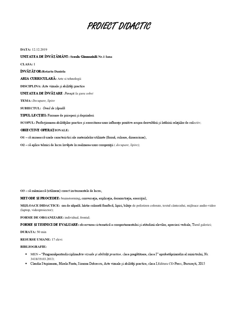 PROIECT DIDACTIC