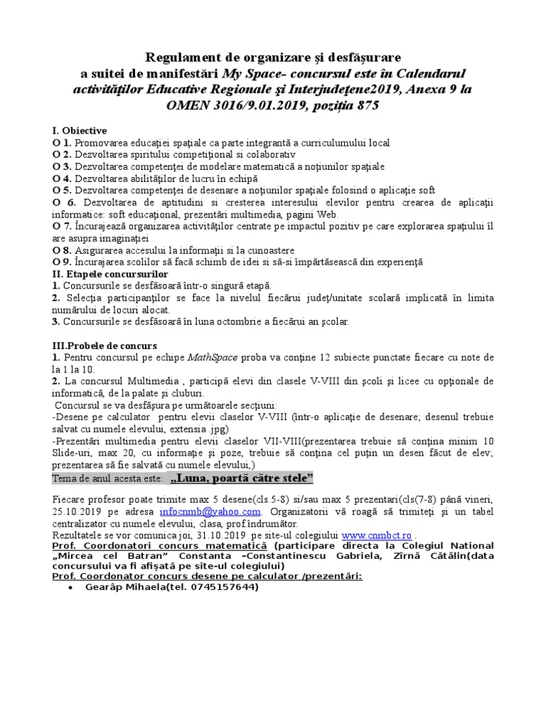 25.10.2019 pe adresa infocnmb@[Link]. Organizatorii vă roagă să trimiteţi şi un tabel