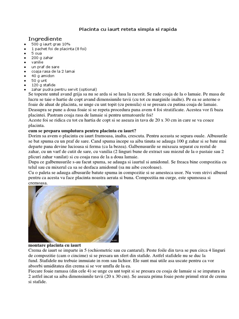 Placinta cu iaurt reteta simpla si rapida
