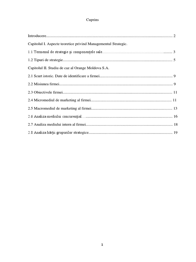 strategic pentru Orange S.A din Moldova sunt cuprinse în ultima parte a lucrării studiate.