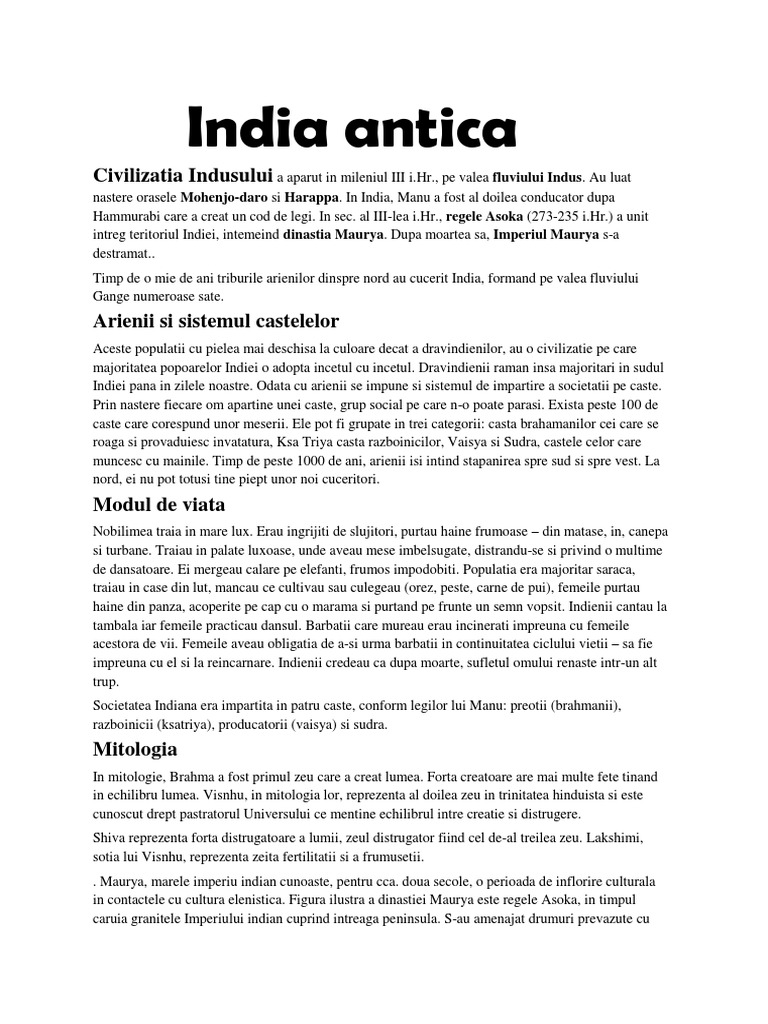 matematica, literatura, arte, etc.) In India antica mestesugurile au o traditie veche atat casnica cat si