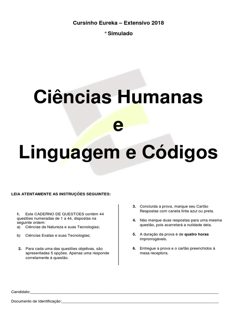 2. Para cada uma das questões objetivas, são 6. Entregue a prova e o cartão preenchidos à