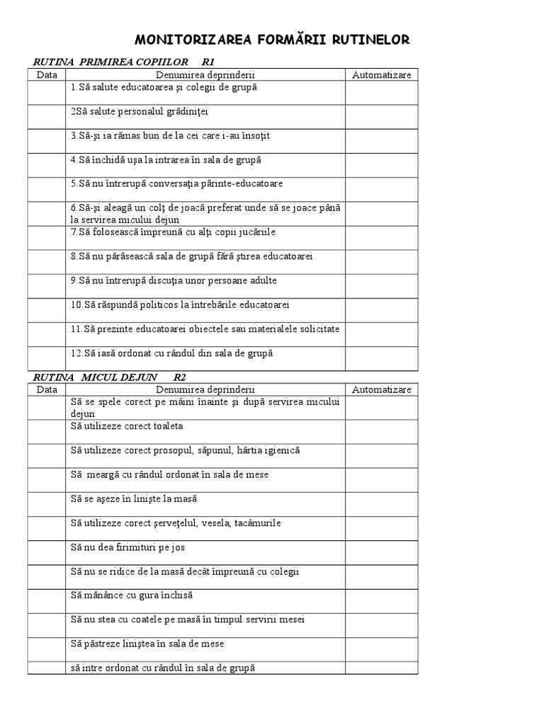 MONITORIZAREA FORMĂRII RUTINELOR