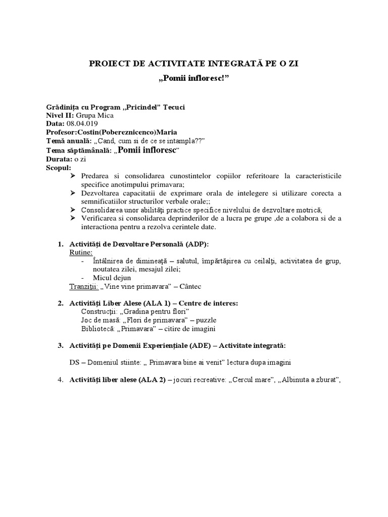 PROIECT DE ACTIVITATE INTEGRATĂ PE O ZI