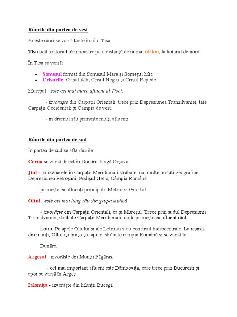 Râurile din partea de sud