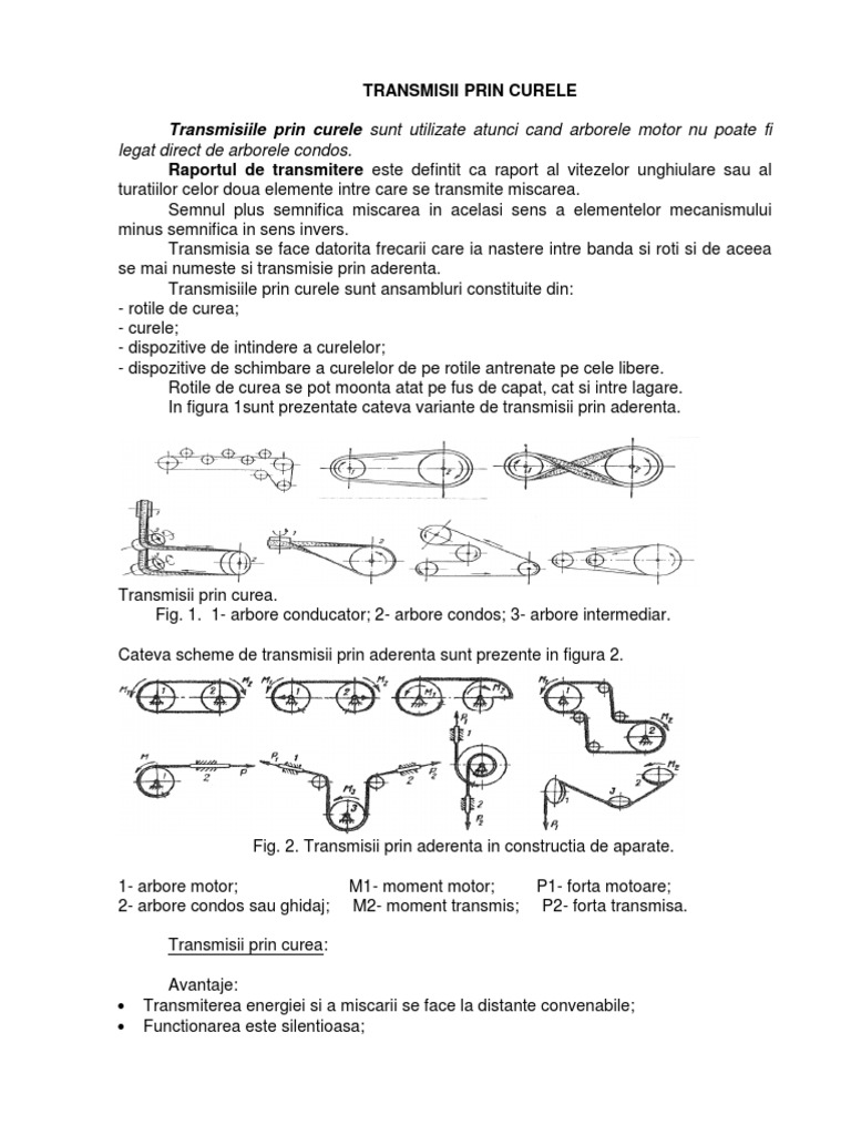 Fig. 2. Transmisii prin aderenta in constructia de aparate.