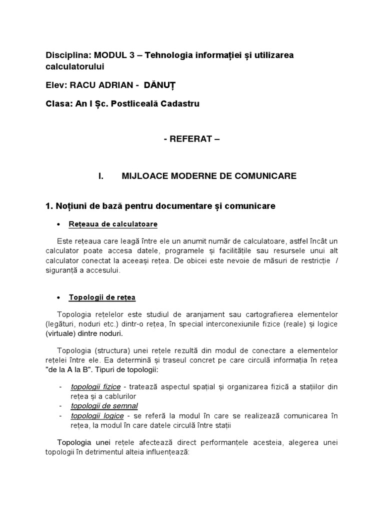 Disciplina: MODUL 3 – Tehnologia informației și utilizarea