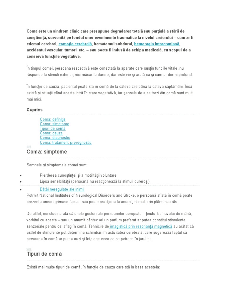 prognosticul este extrem de rezervat dacă pacientul stă în comă mai mult de 21 de zile.