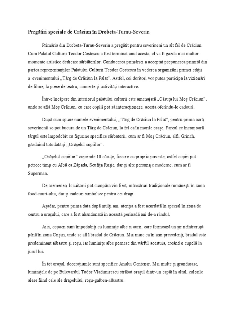 Pregătiri speciale de Crăciun în Drobeta-Turnu-Severin