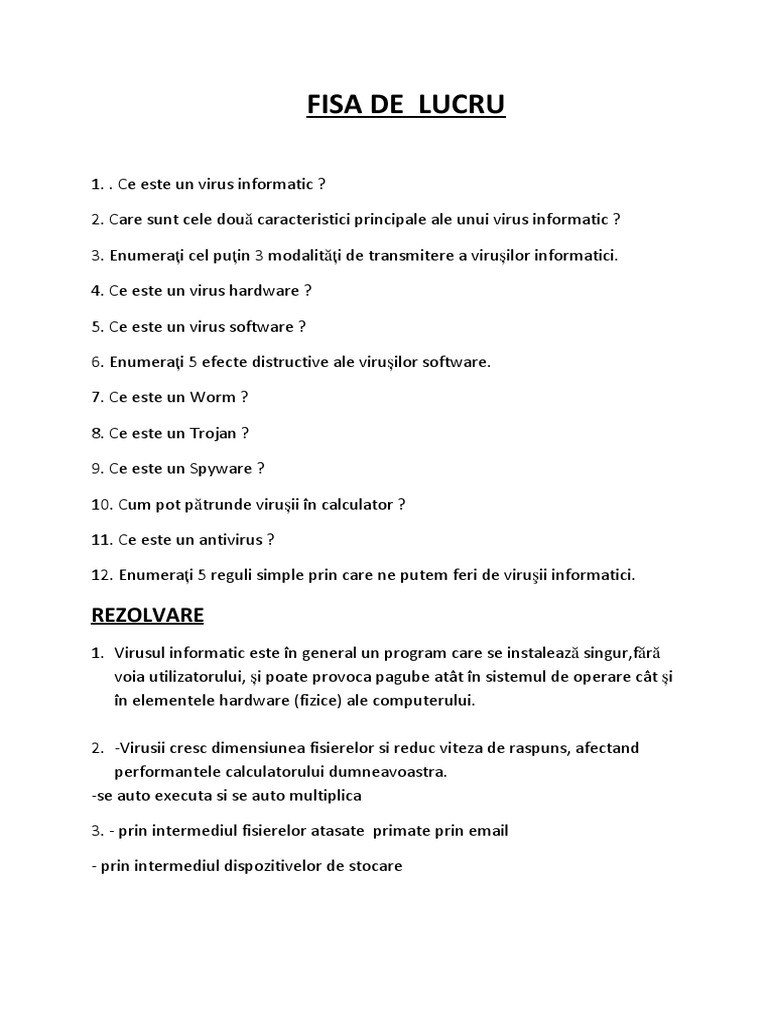 1. . Ce este un virus informatic ?