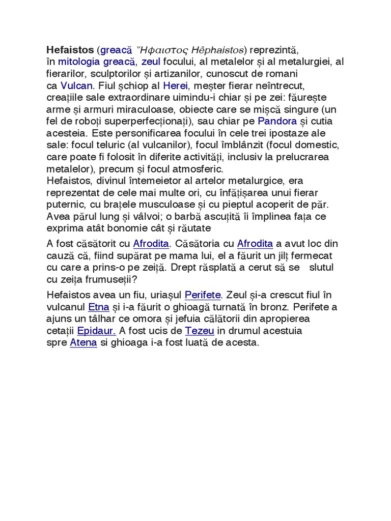în mitologia greacă, zeul focului, al metalelor și al metalurgiei, al