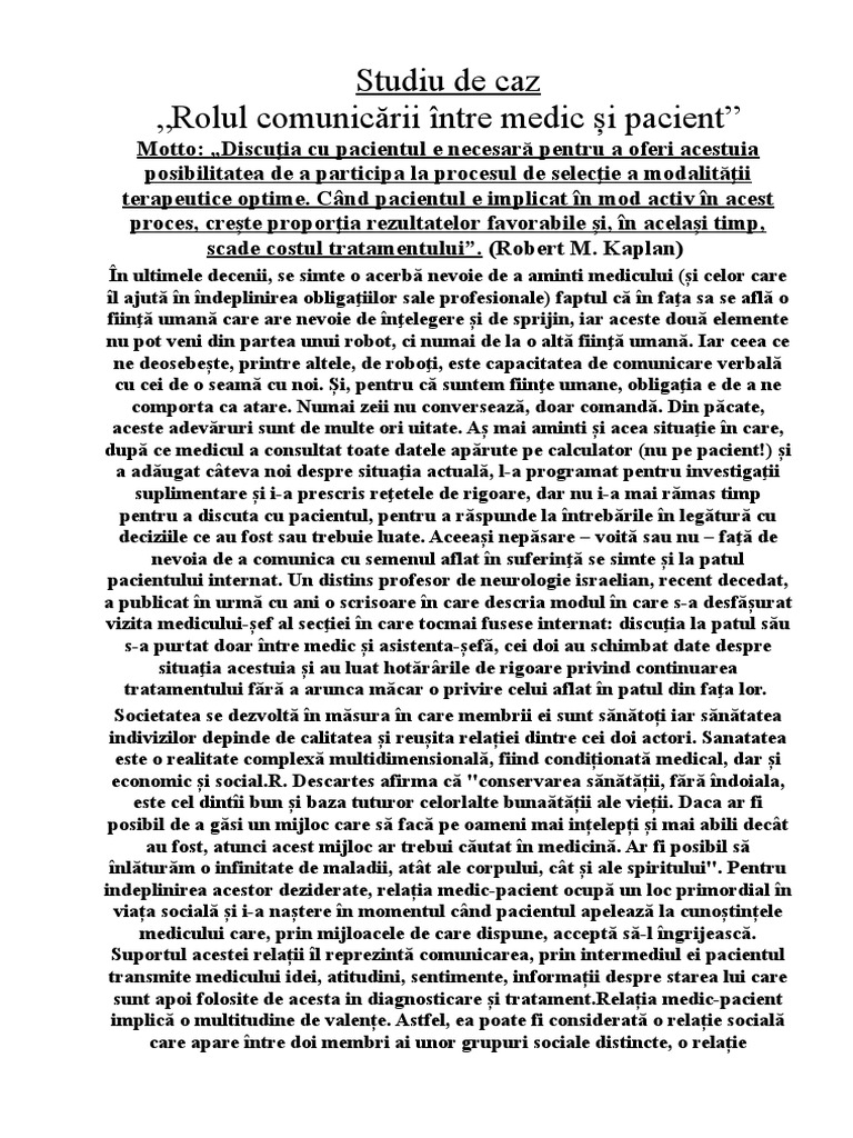 actuale a relației dintre medic si pacient, am considerat a fi esențial de analizat