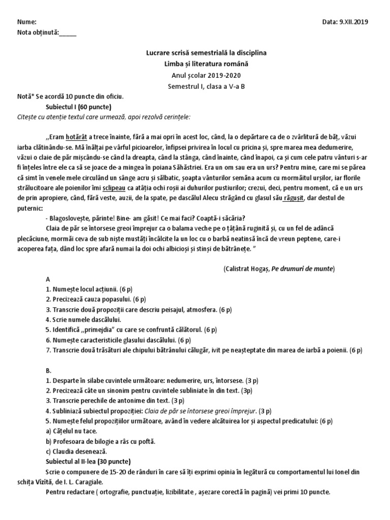 Pentru redactare ( ortografie, punctuație, lizibilitate , așezare corectă în pagină) vei primi 10 puncte.