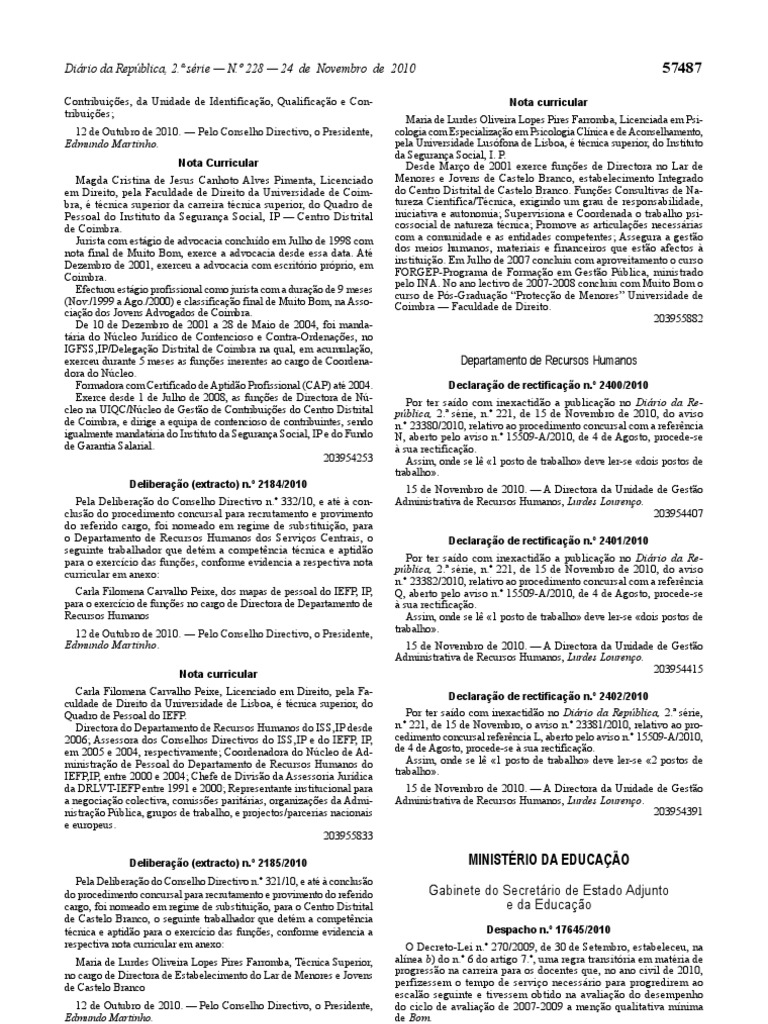 Carla Filomena Carvalho Peixe, Licenciado em Direito, pela Fa- Declaração de rectificação n.º 2402/2010